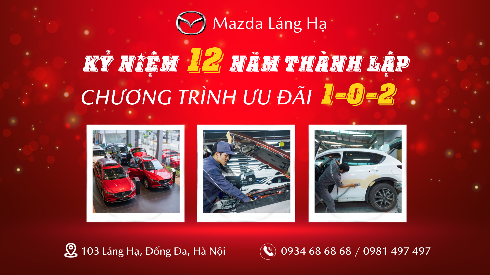 CHÀO MỪNG THÁNG KỶ NIỆM 12 NĂM THÀNH LẬP MAZDA NGUYỄN TRÃI/ MAZDA LÁNG HẠ - CHƯƠNG TRÌNH ƯU ĐÃI CÓ 1-0-2
