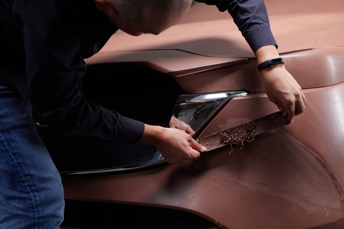 Nghệ nhân Takumi có thể nhìn, chạm và cảm nhận được từng đường nét chuyển động của xe trong quá trình chế tác từ đất sét, qua đó truyền tải thông điệp “Jinba Ittai – nhân mã hợp nhất”.