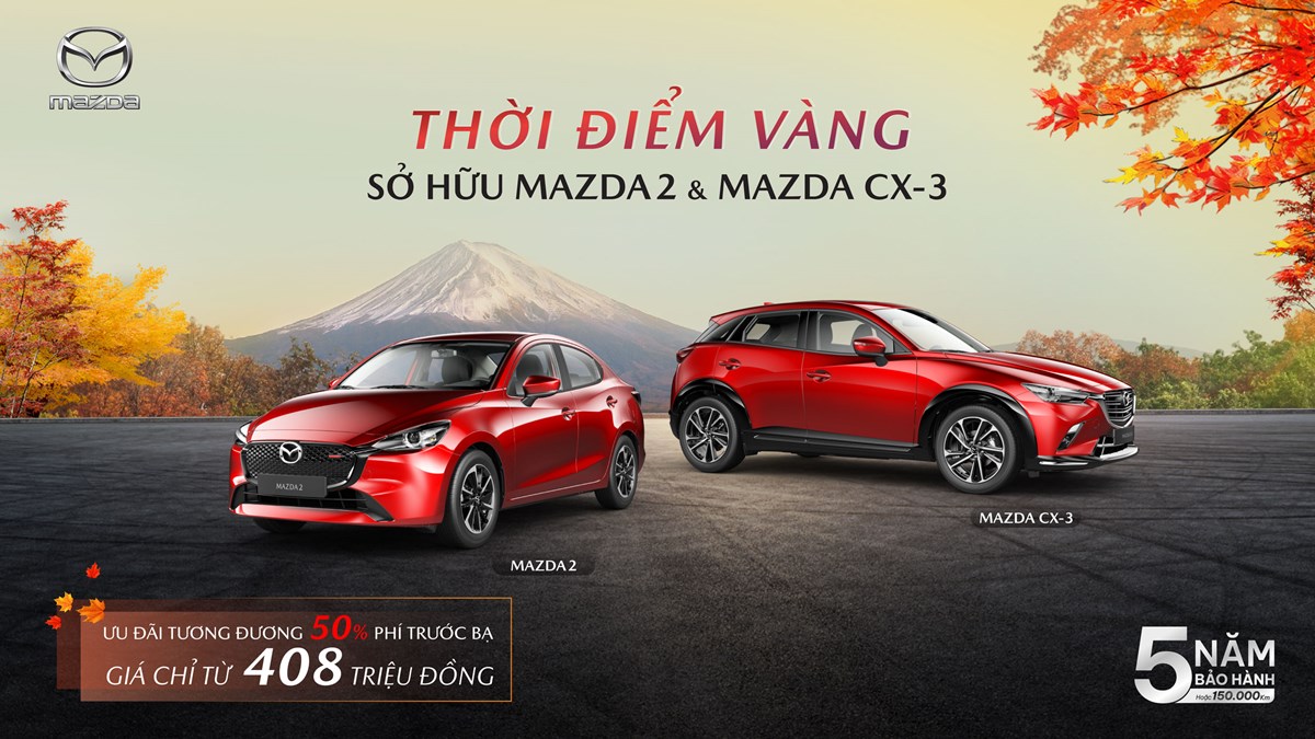Bộ đôi này tiếp tục tạo nên sức hút trên thị trường nhờ thừa hưởng các giá trị cốt lõi của thương hiệu Mazda với thiết kế bắt mắt, linh hoạt, cùng công nghệ SkyActiv tối ưu hiệu năng và tiết kiệm nhiên liệu. Mazda2 và Mazda CX-3 đang được nhiều khách hàng lần đầu mua xe ưu tiên lựa chọn nhờ đa dạng phiên bản và mức giá từ 408 triệu đồng. Hiện hai mẫu xe nhập khẩu Thái Lan được ưu đãi giá tương đương 50% phí trước bạ, đưa giá lăn bánh khởi điểm xuống còn 470 triệu đồng.