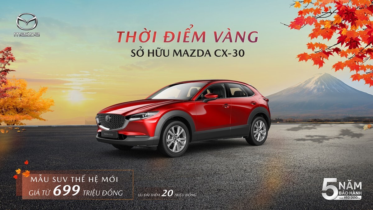 Với những đột phá trong thiết kế và công nghệ, Mazda3 và CX-30 đều khoác lên mình vẻ đẹp tinh tế của ngôn ngữ thiết kế thế hệ mới. Hai mẫu SUV này đề cao sự cuốn hút bằng đường cong và vẻ đẹp của hiệu ứng ánh sáng. Xuyên suốt thân xe là những đường cong tạo nên những mảng sáng tối thay đổi linh hoạt theo từng góc nhìn và góc chiếu sáng. Ghế ngồi trên hai mẫu xe này ứng dụng thiết kế kiến trúc SkyActiv Vehicle Architecture, hỗ trợ xương sống và nâng đỡ khung xương thẳng một cách tự nhiên. Mazda3 hiện có giá bán từ 579 triệu đồng, giảm phí trước bạ đến 36 triệu đồng; Mazda CX-30 ưu đãi giá 20 triệu đồng cho tất cả các phiên bản.