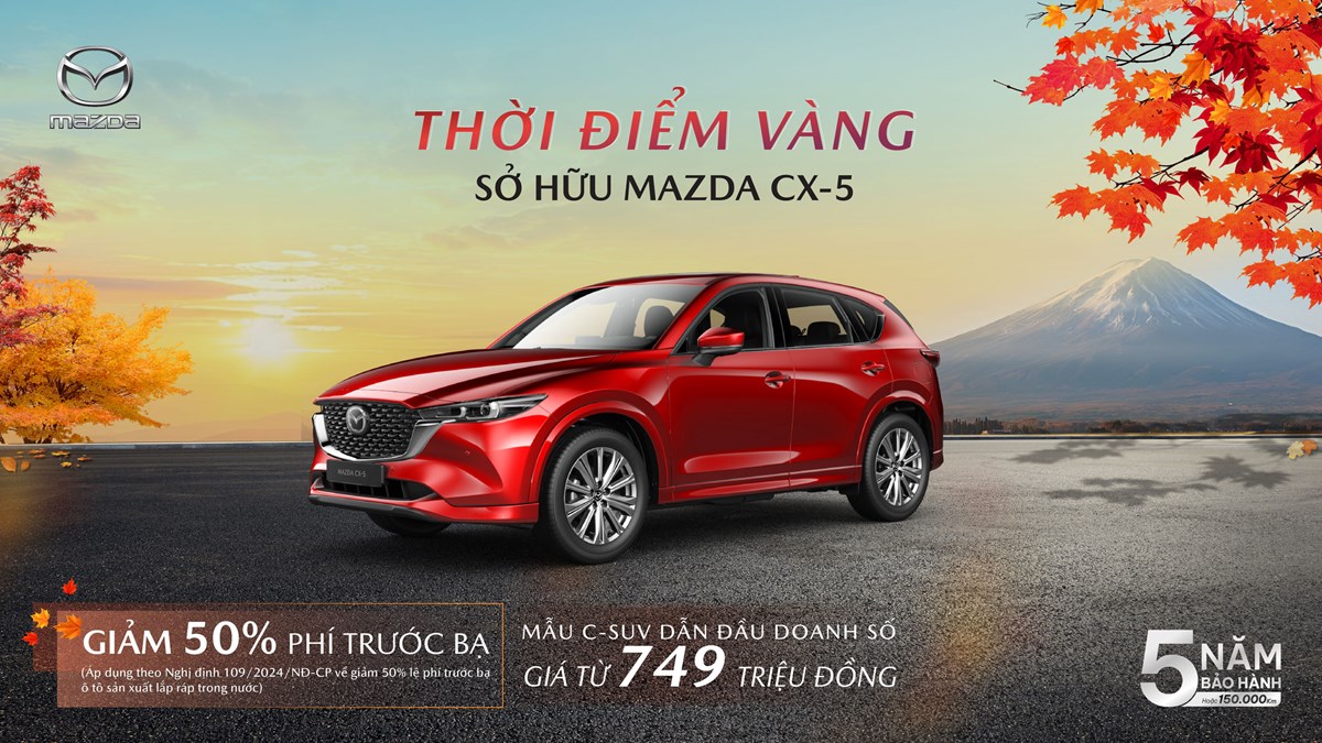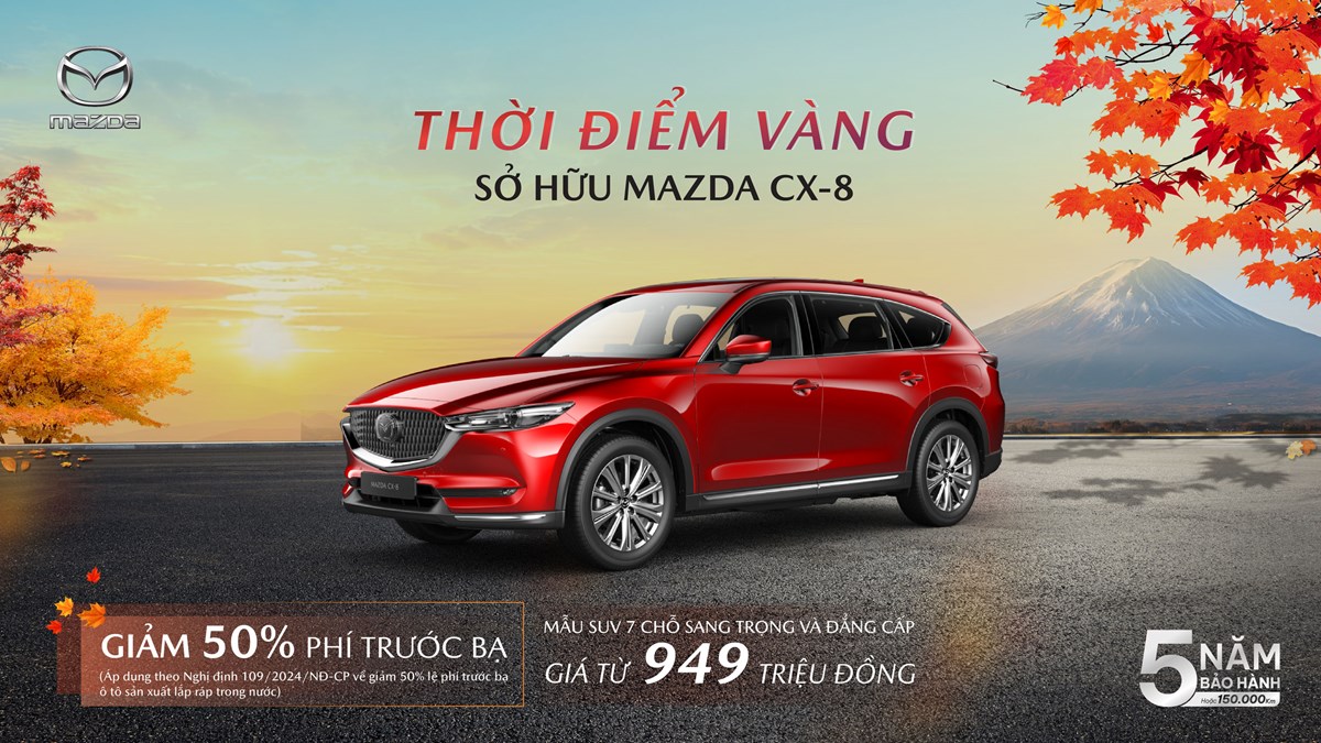 Khách hàng sở hữu các mẫu xe Mazda trong tháng 10 còn được áp dụng chính sách bảo hành 5 năm hoặc 150.000 km tại hệ thống hơn 100 showroom Mazda trên toàn quốc.